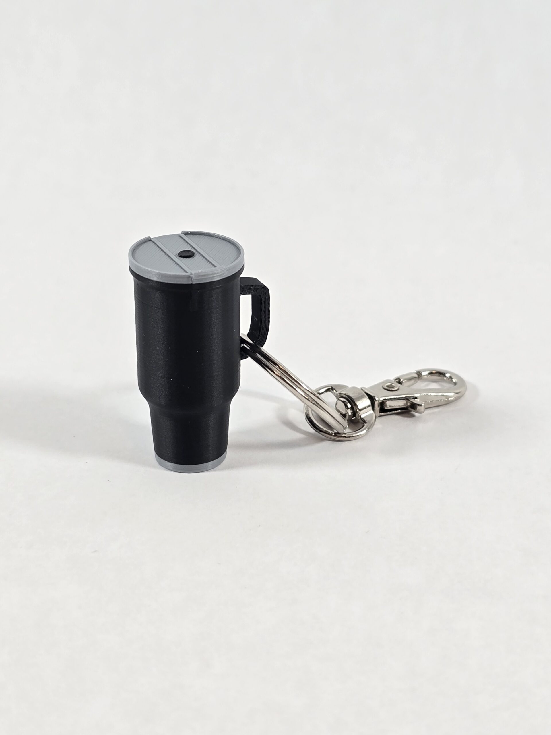 This keychain features a miniature tumbler design, 3D printed in PLA plastic. The lightweight print is attached to a standard keyring, making it suitable for everyday use on keys, bags, or zippers. Each piece is produced using FDM 3D printing, so minor layer lines or surface variations may be visible as part of the manufacturing process.